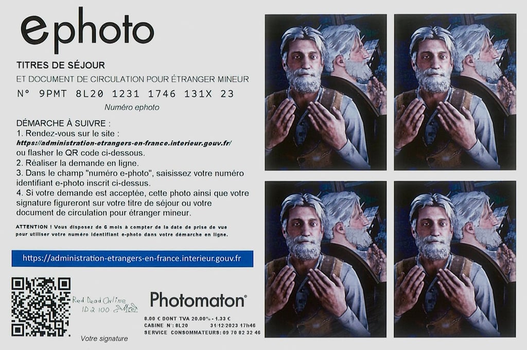 Chaque photographie du projet suit un protocole précis : capture de l’avatar dans l’éditeur de personnage d’un jeu, re-photographie de cet avatar dans la cabine Photomaton en mode « Photo pour titre de séjour », impression dans la cabine puis numérisation du tirage pour créer une nouvelle image digitale. Ce flux de transformations reflète la complexité bureaucratique que traversent réfugiés et migrants. Les « artefacts visuels » qui apparaissent à différentes étapes deviennent des métaphores des fractures, réécritures et déplacements que subit l’identité lorsqu’elle doit être reconfigurée dans un autre pays.