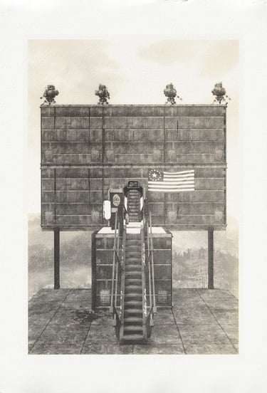 Type 1.5.11. is set in the multiplayer post-apocalyptic world of Fallout 76 and focuses on player-built bases (C.A.M.P.s), decorated with cosmetic items purchased within a “game as a service” economy. By photographing and classifying more than two thousand of these structures into five types, the project treats virtual dwellings as microcosms of real social orders. The final kallitype prints translate these digital architectures into tangible photographic objects.